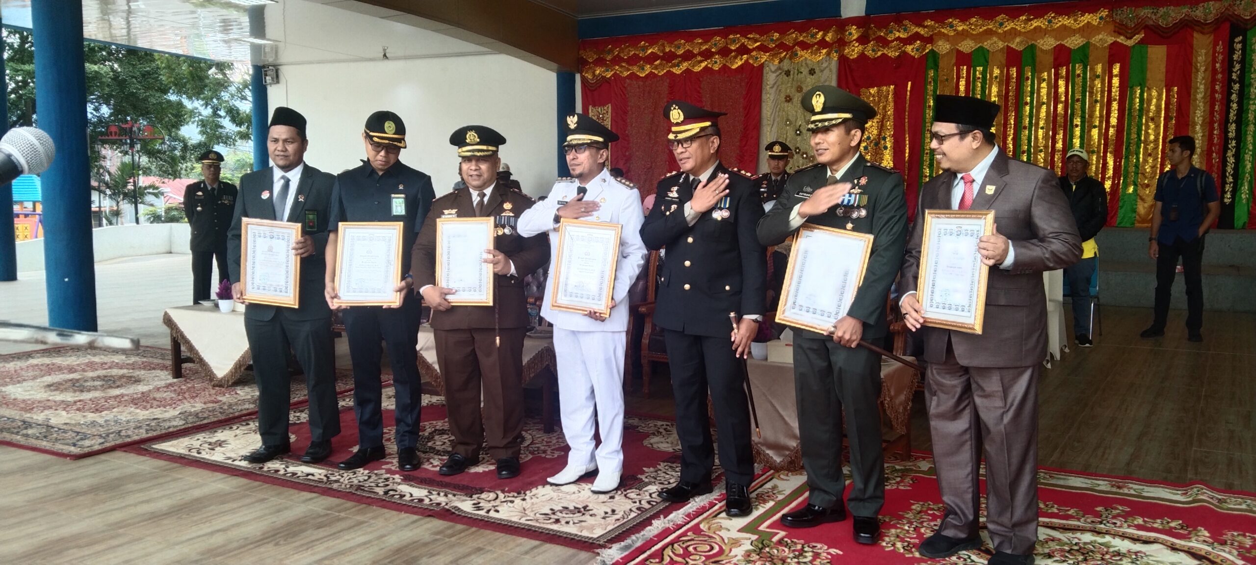 Kapolres Tanah Datar Berikan Penghargaan Kepada Bupati Beserta Pimpinan Daerah Lainnya Pada Peringatan Hari Bhayangkara ke 77