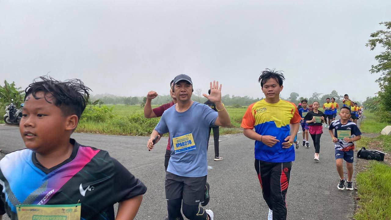 Kapolres Pulang Pisau tampak antusias mengikuti jalannya kegiatan, berlari bersama peserta lainnya dengan penuh semangat. Kehadiran beliau di tengah-tengah masyarakat menjadi momen yang menguatkan kedekatan antara aparat penegak hukum dan warga.