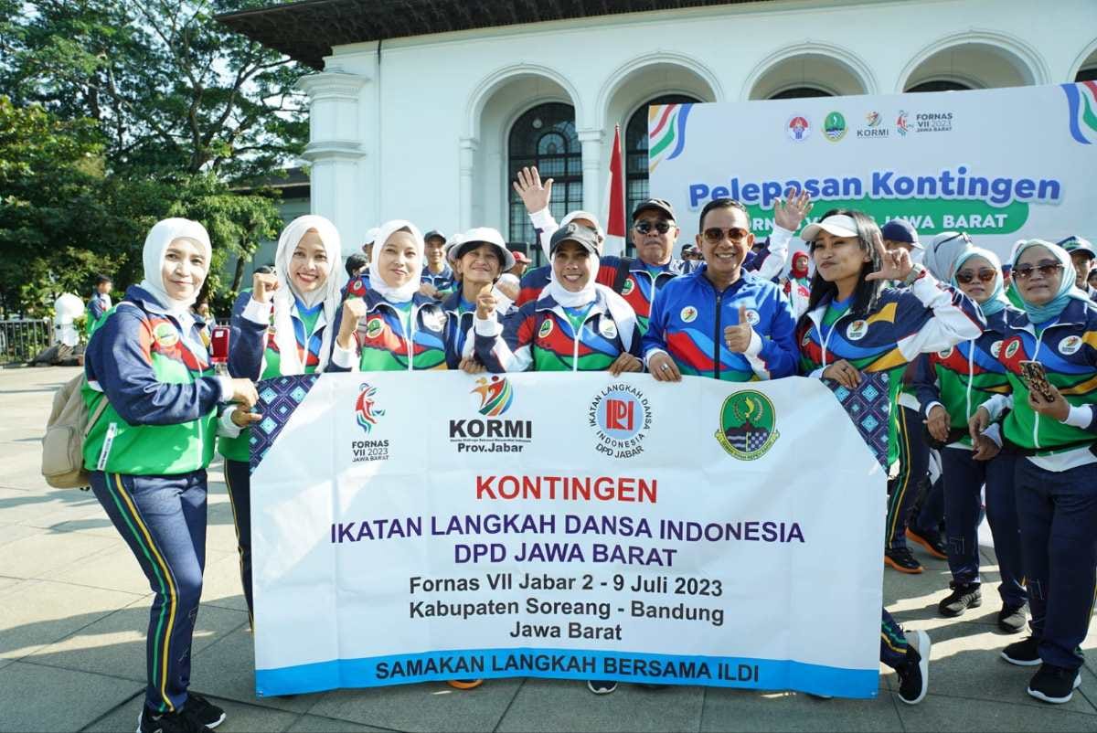 Bandung, fajarharapan.id – Sekretaris Daerah Setiawan Wangsaatmaja melepas kontingen Komite Olahraga Rekreasi Masyarakat Indonesia (KORMI) Jawa Barat yang akan berlaga di ajang Festival Olahraga Masyarakat Nasional (Fornas) VII di Kabupaten Bandung pada tanggal 2-9 Juli, di halaman Gedung Sate, Minggu (2/7/2023) pagi.
