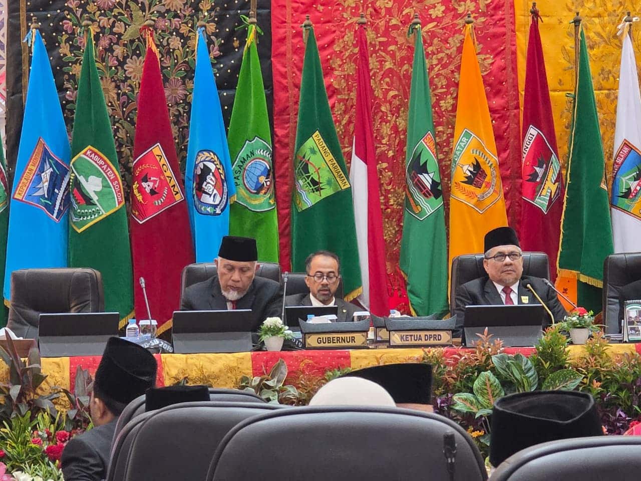 Sidang berlangsung di Ruang Sidang Utama DPRD Sumbar, dipimpin oleh Ketua DPRD Muhidi, dan dihadiri jajaran Forkopimda, unsur pimpinan serta anggota DPRD, kepala OPD, dan pimpinan instansi vertikal di Sumbar.