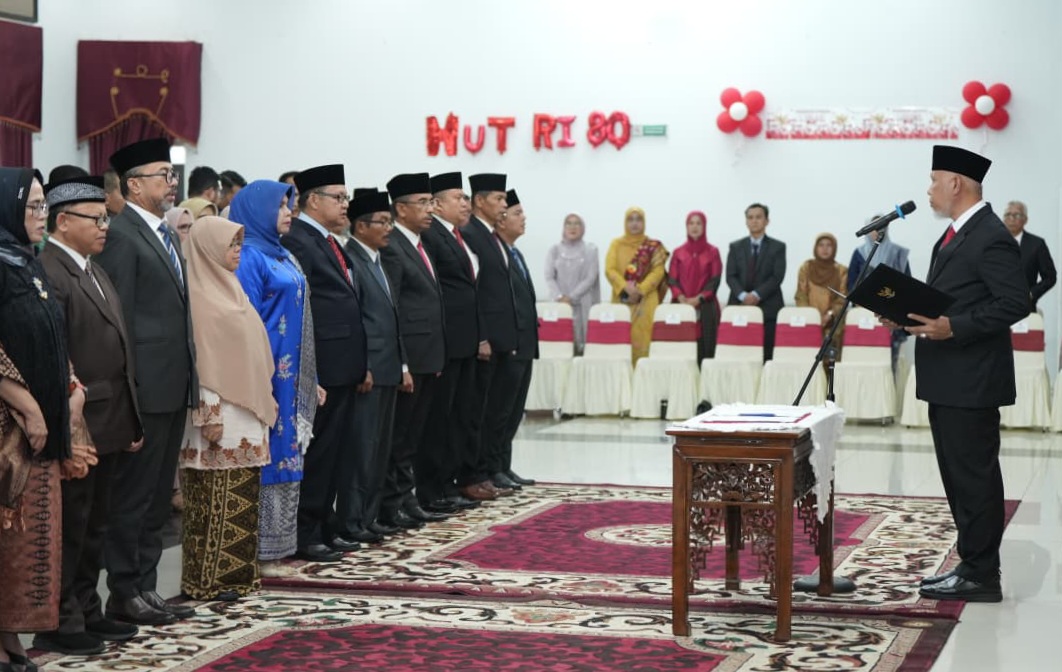 Hal tersebut disampaikannya saat memberikan sambutan dalam acara pelantikan dan pengambilan sumpah jabatan terhadap 14 Pejabat Pimpinan Tinggi Pratama yang berlangsung di Auditorium Gubernuran Sumbar, Sabtu (23/8/2025).