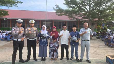 Sebagai bentuk apresiasi sekaligus motivasi, beberapa pelajar yang hadir menerima hadiah helm secara simbolis. Langkah ini merupakan dorongan nyata untuk menanamkan budaya keselamatan sejak dini, terutama penggunaan helm yang benar ketika mengendarai sepeda motor.