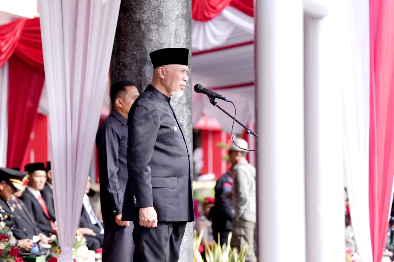 Padang – Gubernur Sumatera Barat (Sumbar) Mahyeldi Ansharullah bertindak sebagai Inspektur Upacara (Irup) pada peringatan Hari Kesaktian Pancasila dan Hari Jadi Sumatera Barat ke-80 tahun 2025 Dalam suasana penuh khidmat dan semangat pengabdian yang dilaksanakan di halaman kantor Gubernur, Rabu (1/10/2025).