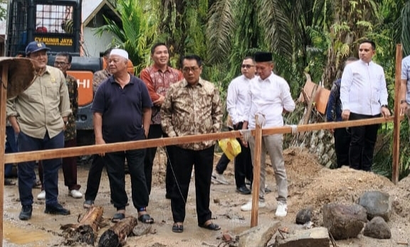 Ia bersama rombongan justru bergerak ke lapangan, meninjau progres pembangunan Jembatan Batang Maduang di Sungai Pingai Nagari III Koto Aur Malintang Selatan, Kecamatan IV Koto Aur Malintang, Minggu (12/10/2025).