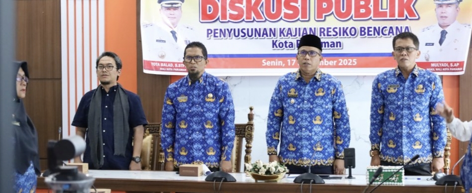 Kota Pariaman – Pemerintah Kota (Pemkot) Pariaman terus memperkuat kesiapsiagaan menghadapi ancaman bencana. Komitmen itu ditunjukkan lewat Diskusi Publik Penyusunan Dokumen Kajian Risiko Bencana (KRB) yang dibuka langsung oleh Wakil Wali Kota (Wawako) Pariaman, Mulyadi, di Ruang Rapat Wali Kota, pada Senin (17/11/2025).