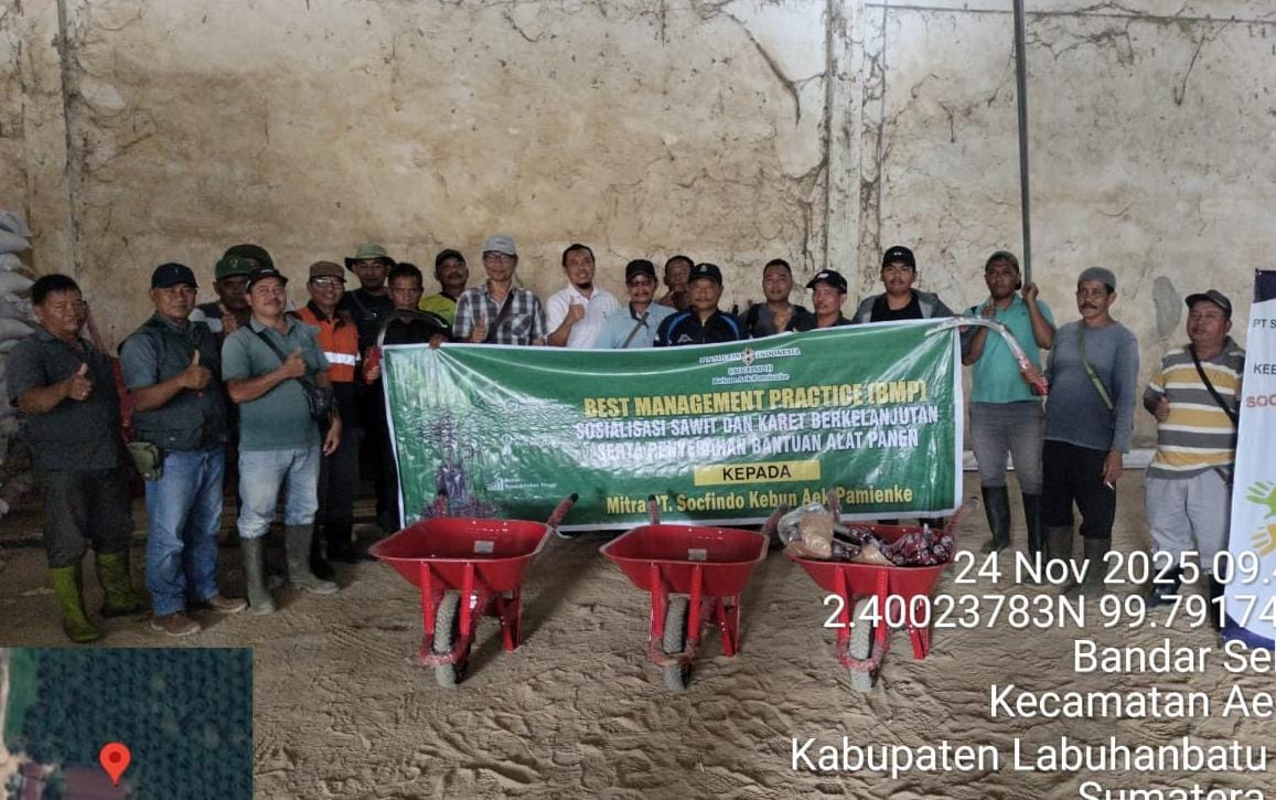 Labura, Fajarharapan.id – PT Socfindo Kebun Aek Pamienke kembali menegaskan komitmennya dalam mendukung peningkatan produktivitas petani melalui kegiatan kemitraan dengan KUD Mandiri III Sei Tualang. Komitmen tersebut diwujudkan dengan penyaluran 20 unit kereta sorong, 20 egrek, dan 20 galah yang diserahkan secara resmi pada Senin (24/11/2025).