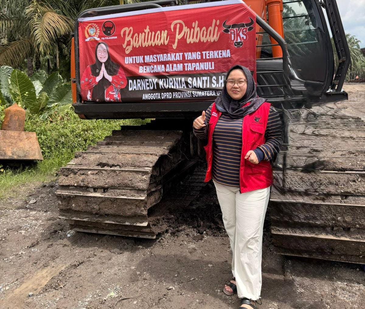 Di tengah kondisi tersebut, Anggota DPRD Sumatera Utara dari PDI Perjuangan, Darnedy Kurnia Santi, SH, M.Kn, hadir memberikan uluran tangan dengan mengirimkan satu unit excavator untuk membantu proses pencarian korban serta pembersihan fasilitas yang rusak akibat banjir, Sabtu (13/12/2025).