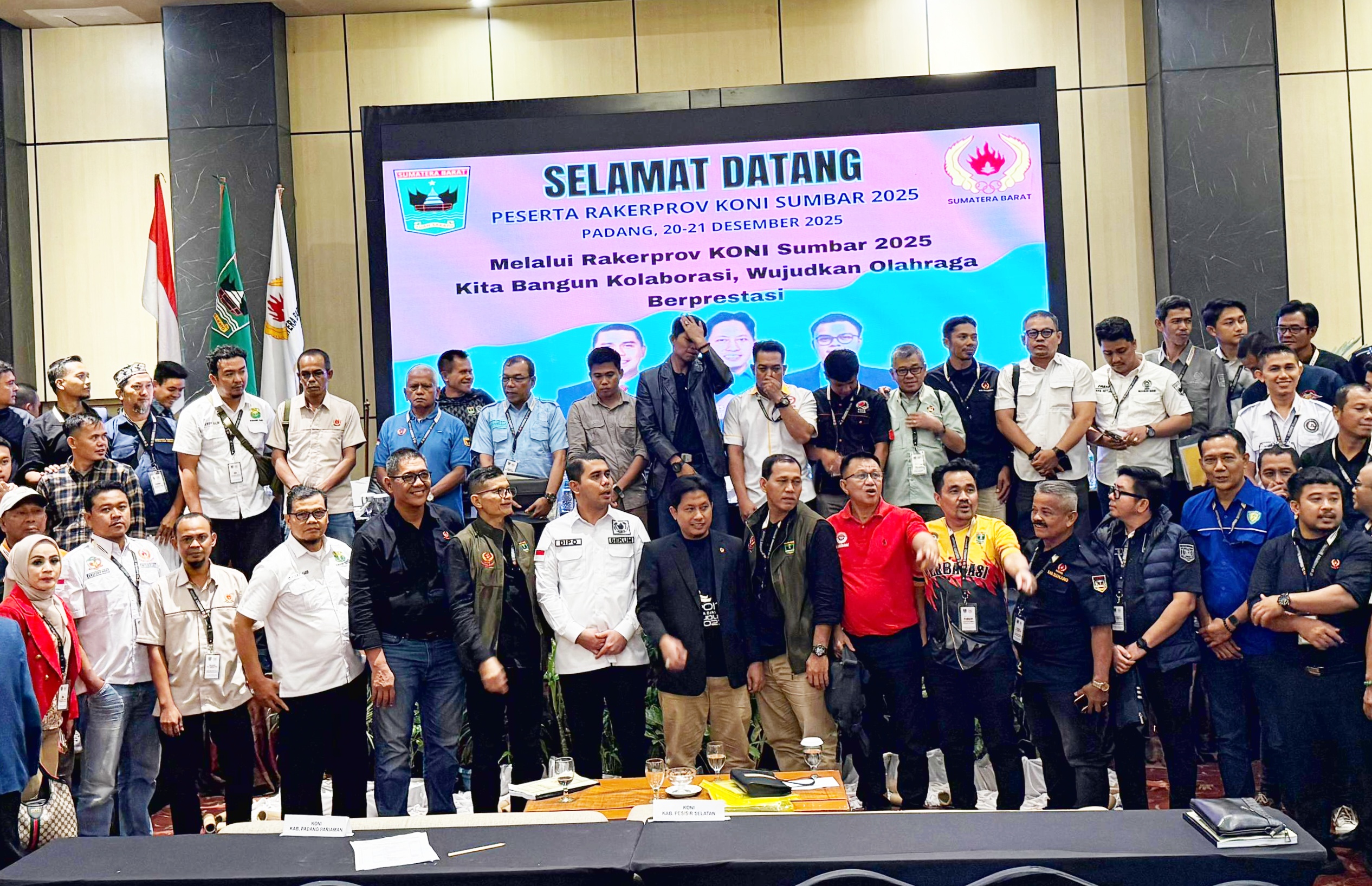 Padang, fajarharapan.id— Rapat Kerja Provinsi (Rakerprov) KONI Sumatera Barat Tahun 2025 menghasilkan sejumlah rekomendasi strategis terkait penataan organisasi, keanggotaan, transparansi keuangan, serta arah pembinaan prestasi olahraga dan penyelenggaraan Pekan Olahraga Provinsi (Porprov) 2026.