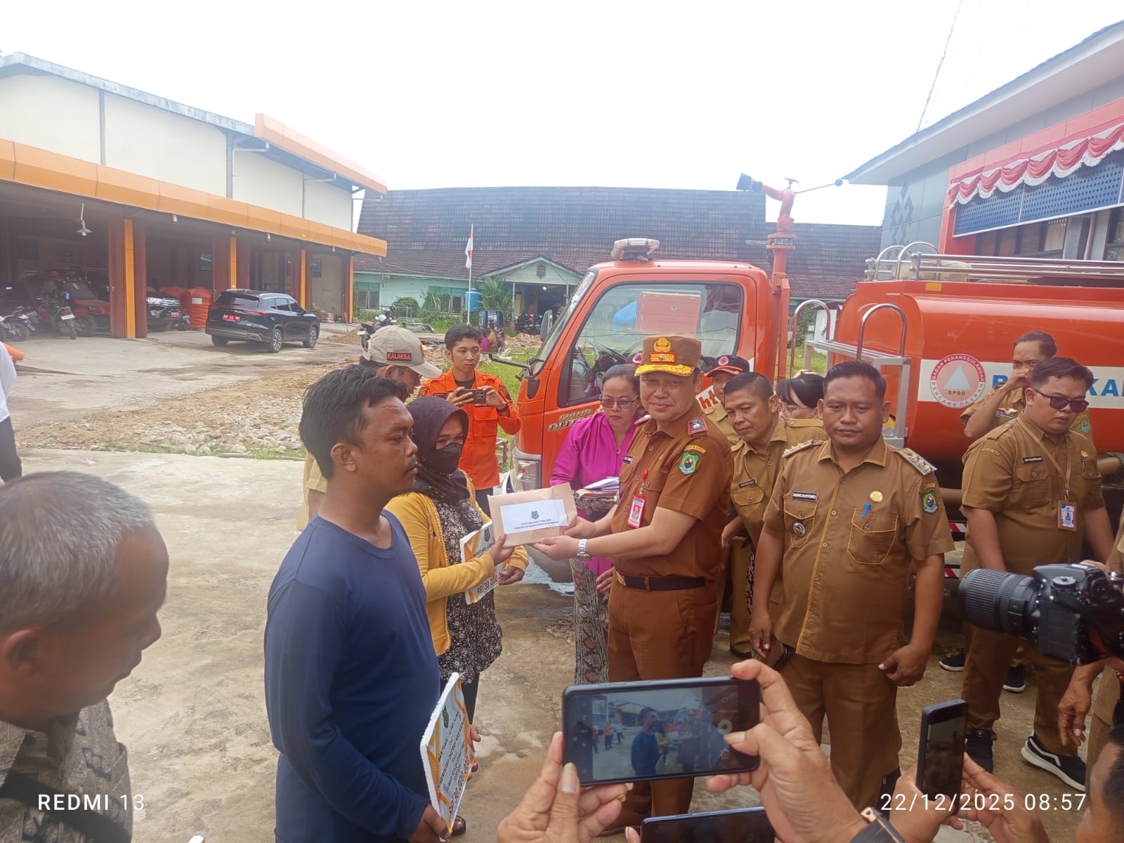 Penyerahan bantuan tersebut dilaksanakan di halaman Kantor Badan Penanggulangan Bencana Daerah (BPBD) Kabupaten Kapuas, Senin (22/12/2025). Kegiatan ini berlangsung tertib dan dihadiri oleh para penerima bantuan yang sebelumnya telah melalui proses pendataan dan verifikasi oleh pihak terkait.