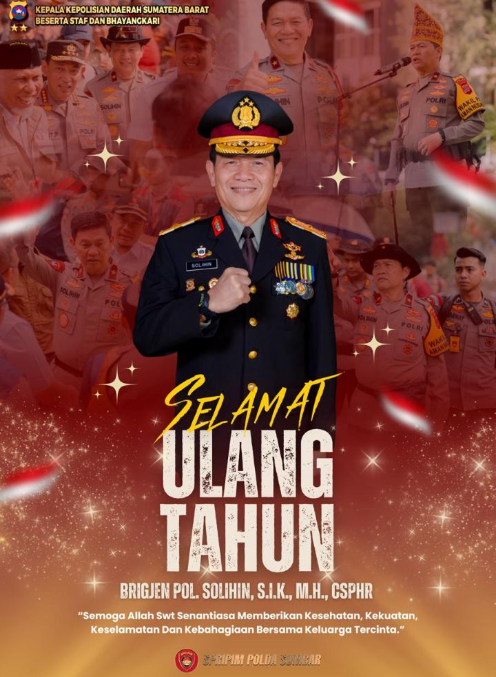 Padang, Hari istimewa datang menyapa Wakapolda Sumatera Barat, Brigjen Pol Solihin, S.I.K., M.H., CSPHR. Ulang tahun bukan sekadar penanda usia, tetapi momentum untuk menengok perjalanan panjang pengabdian—sebuah jalan yang ditempuh dengan disiplin, keteguhan, dan cinta pada tugas.