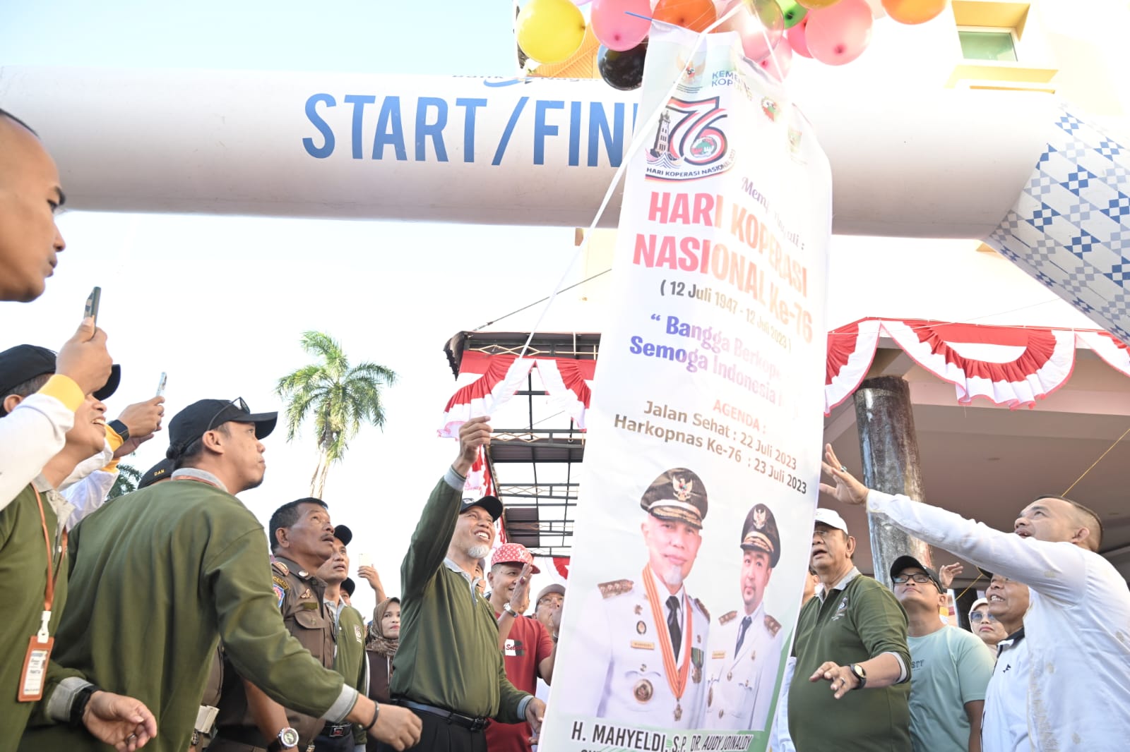 Padang, fajarharapan.id — Gubernur Sumatera Barat Mahyeldi Ansharullah melepas ribuan peserta gerak jalan santai dalam rangka Puncak Hari Koperasi Nasional (Harkopnas) yang ke-76 tahun 2023. Acara tersebut dilaksanakan di Halaman Kantor Gubernur Sumbar, Sabtu (22/7/2023).