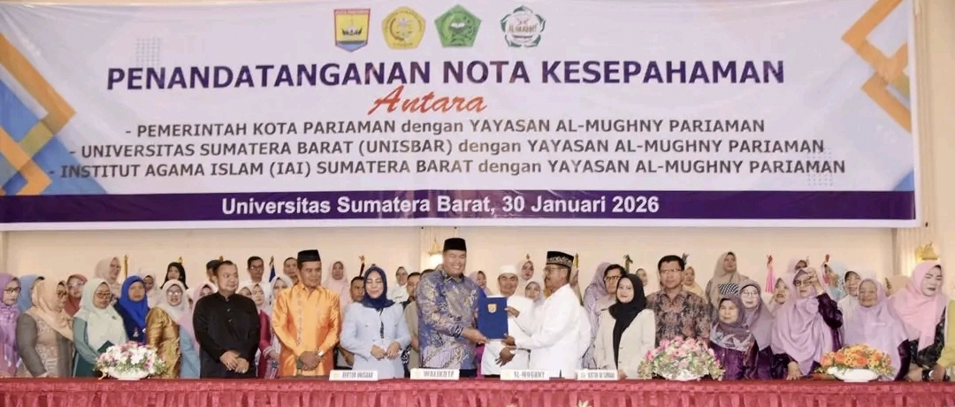 MoU Pendidikan di Kota Pariaman, Pesantren Masuk PusatKota Pariaman – Pemerintah Kota (Pemko) Pariaman kembali membuat langkah yang menyita perhatian. Wali Kota Pariaman Yota Balad menandatangani Memorandum of Understanding (MoU) dengan Yayasan Al-Mughny Pariaman di UNISBAR Convention and Exhibition (UCE), Kampus I Pariaman, kawasan By Pass, Jumat (30/01/2026). Penandatanganan ini menandai babak baru relasi pemerintah daerah dengan lembaga pendidikan Islam.