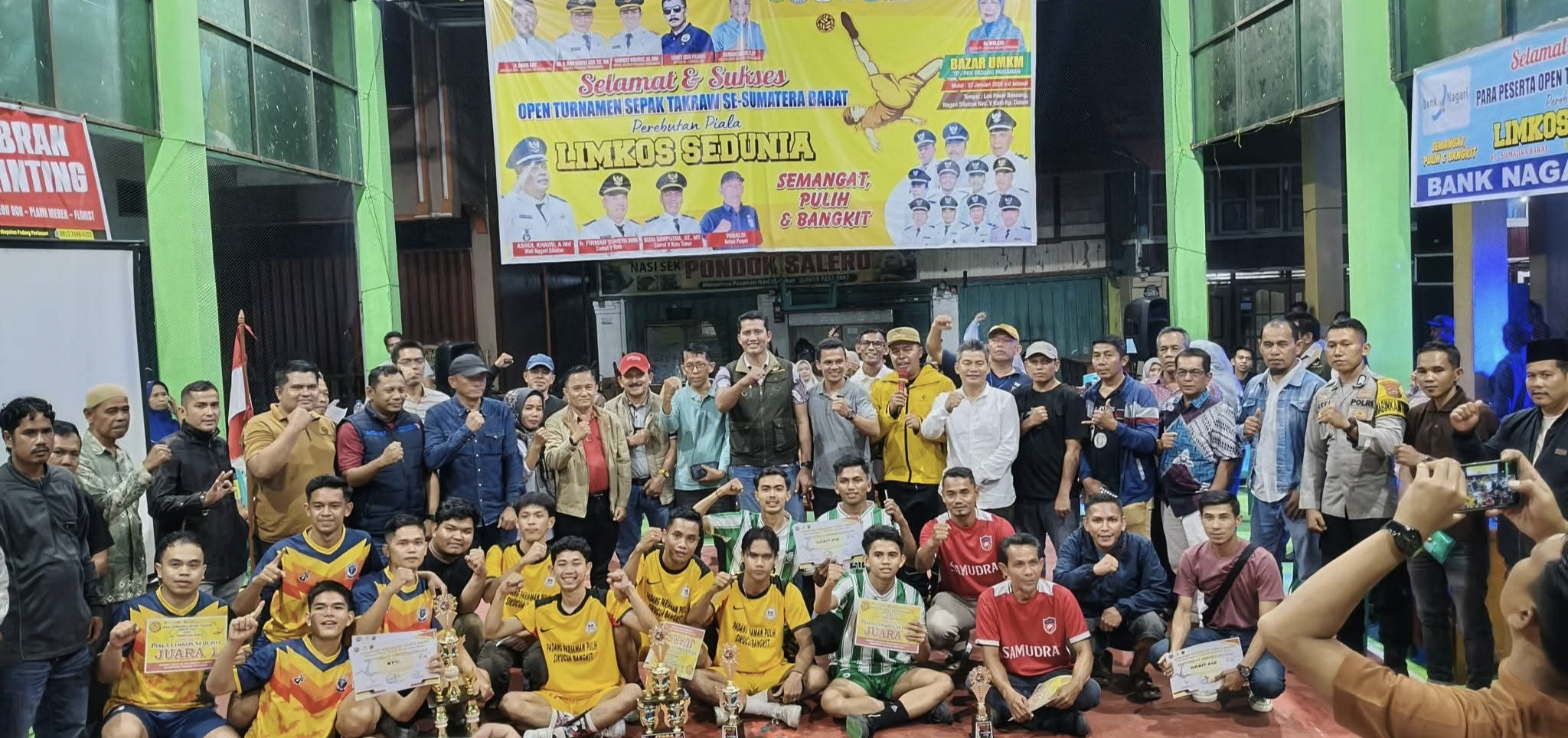 Padang Pariaman – Sorak penonton mengguncang Lapangan Takraw Balai Basuang, Nagari Sikucua, V Koto, Padang Pariaman, Sumatera Barat, Sabtu malam (7/2/2026). Ribuan pasang mata terpaku menyaksikan duel panas Grand Final Open Turnamen Takraw “Piala Limkos Sedunia” Sumatera Barat.