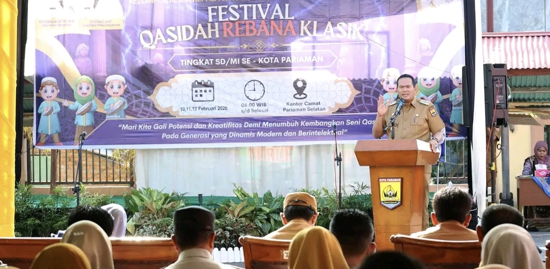 Festival Qasidah Rebana Klasik tingkat SD/MI se-Kota Pariaman resmi dibuka Wali Kota Pariaman, Yota Balad, dalam sebuah momentum yang bukan sekadar perlombaan seni, tetapi juga panggung pembentukan karakter generasi muda yang berakar pada nilai agama dan budaya.