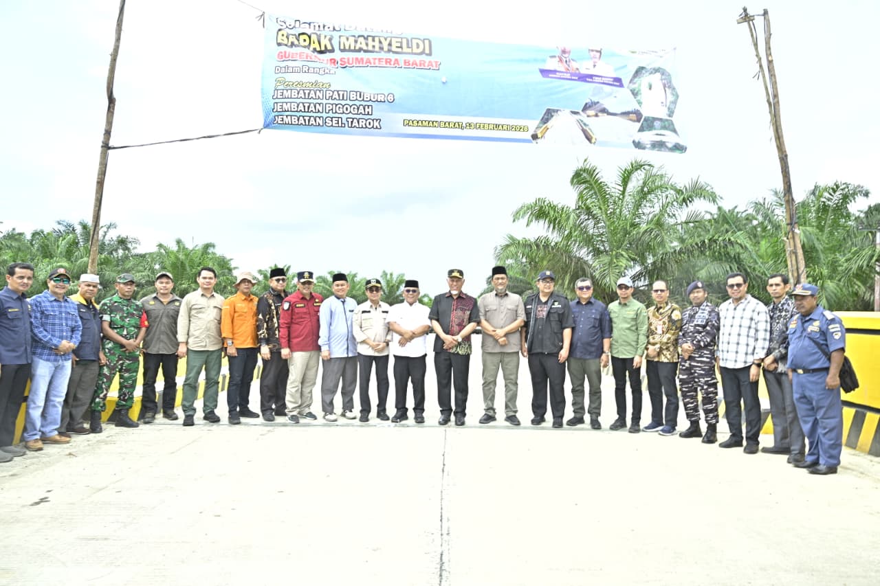 Pasaman Barat — Gubernur Sumatera Barat (Sumbar), Mahyeldi Ansharullah meresmikan pemakaian tiga jembatan strategis di Kabupaten Pasaman Barat, Jumat (13/2/2026). Ketiga jembatan tersebut masing-masing Jembatan Patibubur, Jembatan Pigogah, dan Jembatan Sungai Tarok, yang dibangun untuk memperkuat konektivitas menuju Pelabuhan Teluk Tapang.