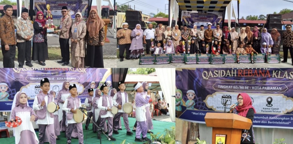Kota Pariaman – Sorak tepuk tangan menggulung halaman Kantor Camat Pariaman Selatan, Kota Pariaman, Sumatera Barat, Kamis siang (12/2/2026), saat Festival Qasidah Rebana Klasik tingkat SD/MI se-Kota Pariaman resmi ditutup.