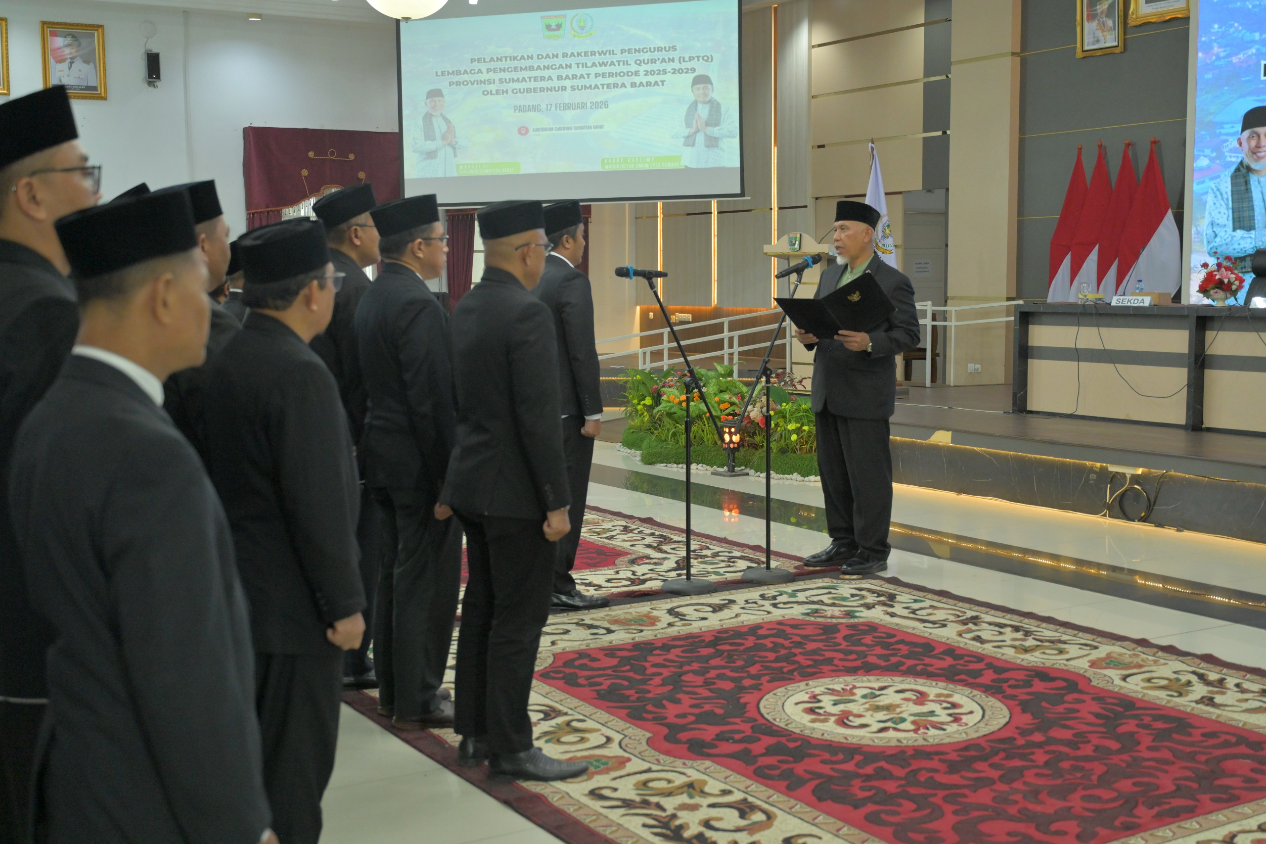 Padang — Gubernur Sumatera Barat (Sumbar), Mahyeldi Ansharullah secara resmi melantik Pengurus Lembaga Pengembangan Tilawatil Qur’an (LPTQ) Provinsi Sumbar periode 2025–2029 di Auditorium Gubernuran, Selasa (17/2/2026).