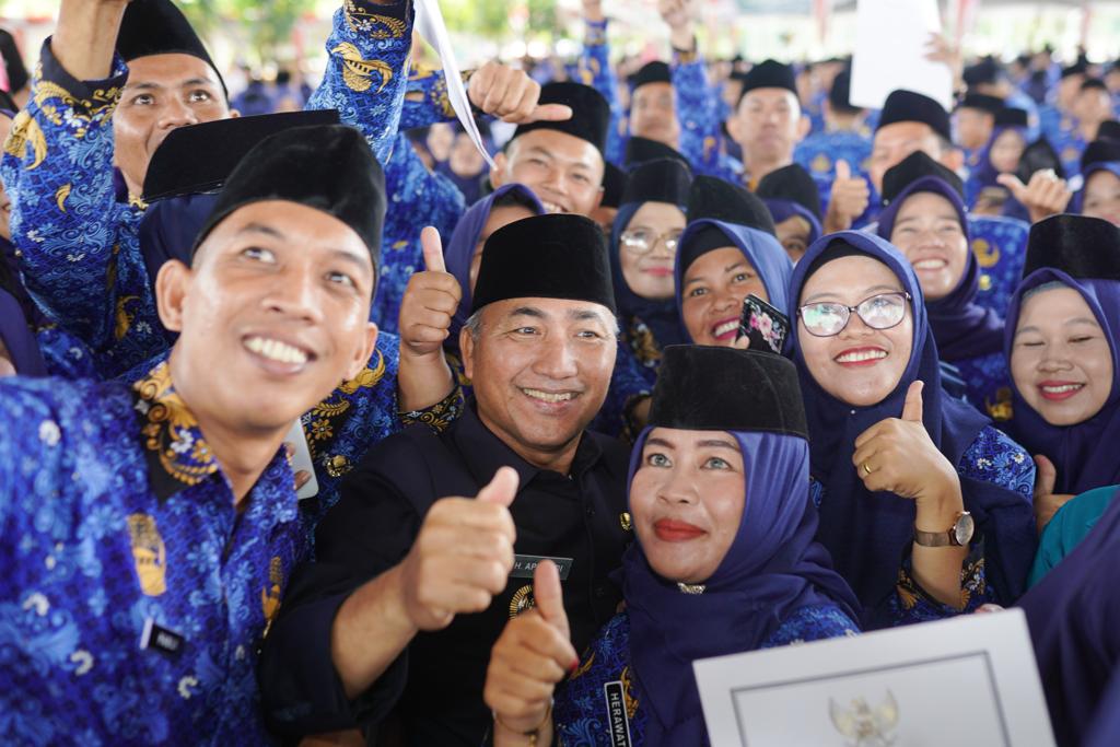 Pj Bupati H Apriyadi menyampaikan ucapan selamat kepada guru PPPK yang baru saja menerima SK dan dilantik yang selama ini telah menunggu waktu cukup lama.
