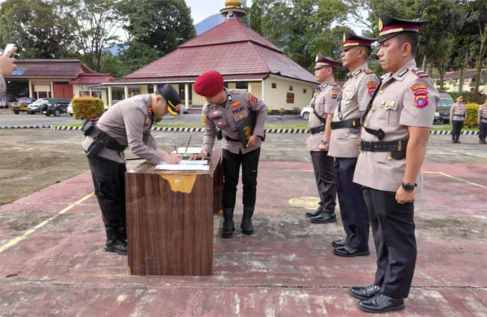Upacara sertijab yang berlangsung khidmat, dipimpin langsung oleh Kapolres Solok Selatan, AKBP M. Faisal Perdana, S.I.K, serta dihadiri oleh para pejabat utama, perwira, bintara, dan bhayangkari di lingkungan Polres Solok Selatan.