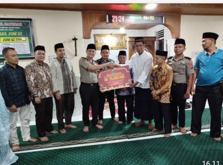 Pada kesempatan tersebut, Tim Safari Ramadhan Kabupaten Solok menyerahkan bantuan secara simbolis sebesar Rp. 25.000.000,- untuk Masjid Nurul Sakinah. Bantuan tersebut diharapkan dapat dimanfaatkan untuk mendukung pembangunan dan kelengkapan fasilitas masjid. Bantuan tersebut diterima langsung oleh pengurus Masjid Darussalam, dan disaksikan langsung oleh jamaah mesjid.(Ron)
