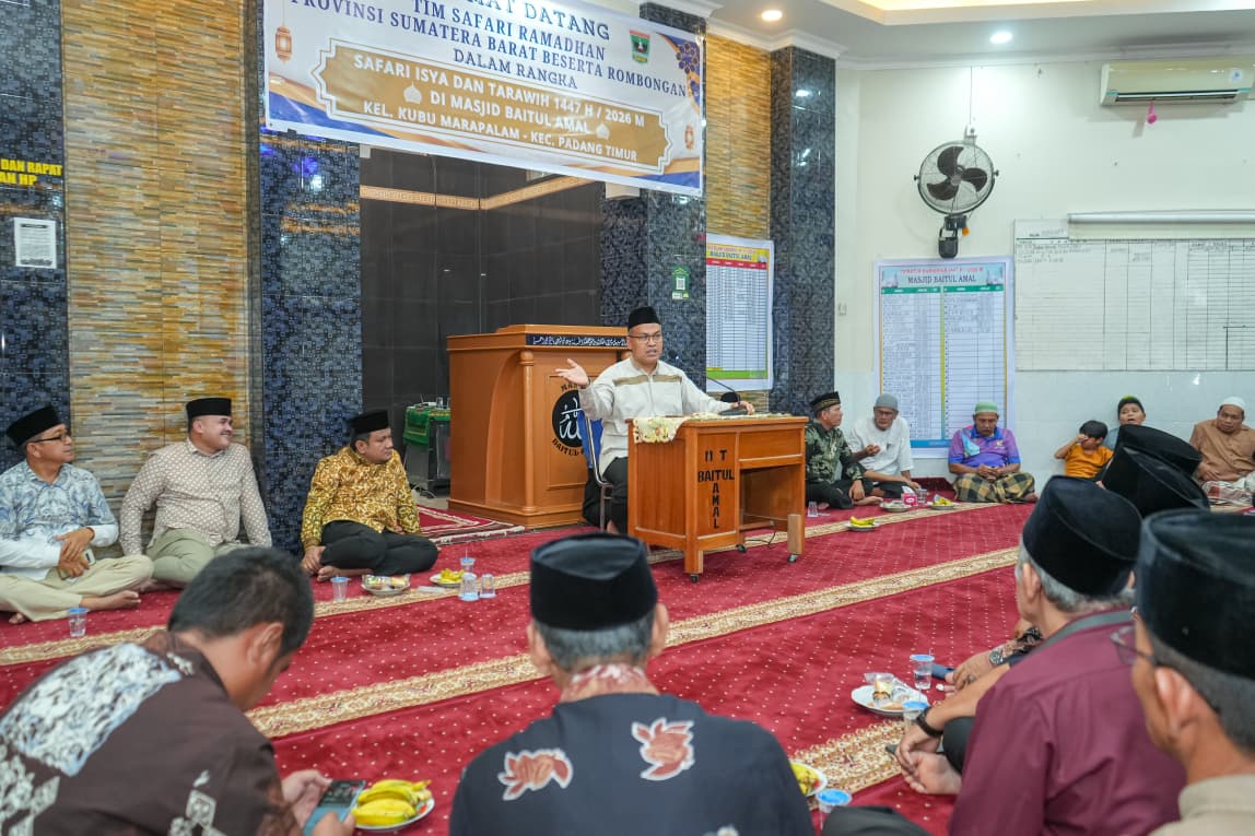 Padang — Sekretaris Daerah Provinsi Sumatera Barat (Sekdaprov Sumbar), Arry Yuswandi memimpin Tim Safari Ramadan Pemerintah Provinsi Sumbar di Masjid Baitul Amal, Jalan Dr. Sutomo No. 14, Kelurahan Kubu Marapalam, Kecamatan Padang Timur, Kota Padang, Kamis (5/3/2026).