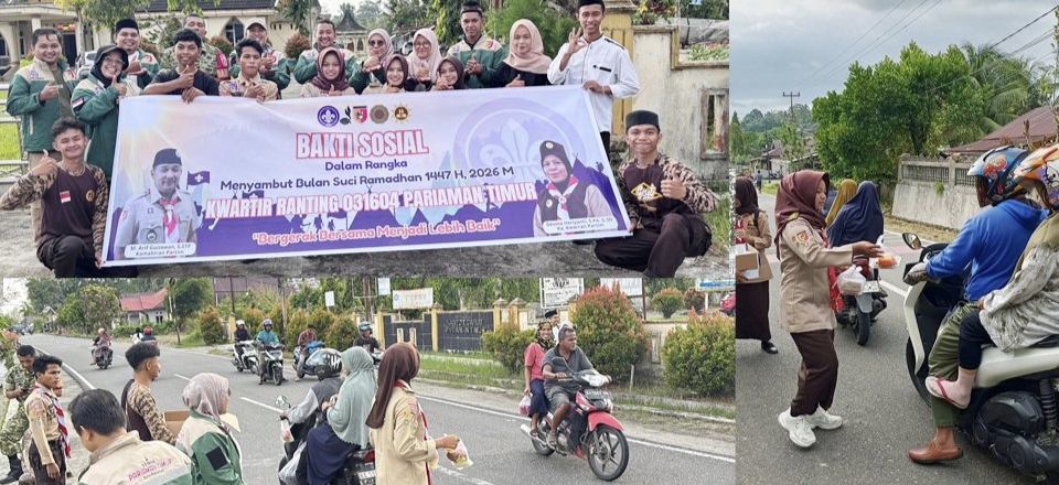 Kota Pariaman – Semangat berbagi di bulan suci Ramadan 1447 Hijriah terasa hangat di Kecamatan Pariaman Timur. Puluhan pengurus dan anggota Pramuka Kwartir Ranting (Kwarran) 031604 Pariaman Timur, Kota Pariaman, Sumatera Barat turun langsung ke jalan melaksanakan aksi sosial berbagi takjil kepada masyarakat, Selasa sore (10/3/2026).
