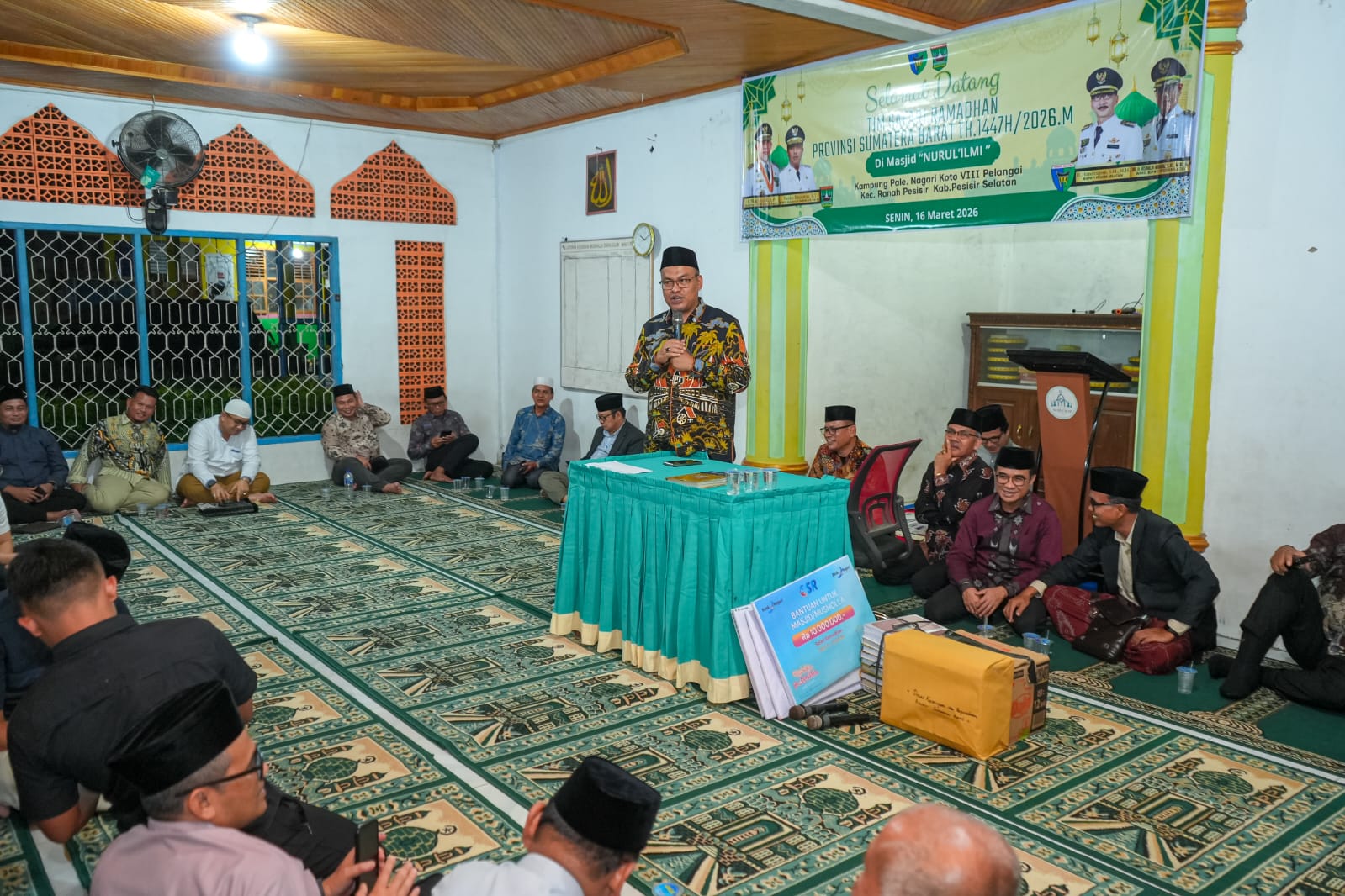Pesisir Selatan — Sekretaris Daerah Provinsi Sumatera Barat (Sekdaprov Sumbar), Arry Yuswandi memimpin Tim Safari Ramadan Pemerintah Provinsi Sumbar berkunjung ke Masjid Nurul Ilmi, Kampung Pale, Nagari Koto VIII Pelangai, Kecamatan Ranah Pesisir, Kabupaten Pesisir Selatan, Senin (16/3/2026).