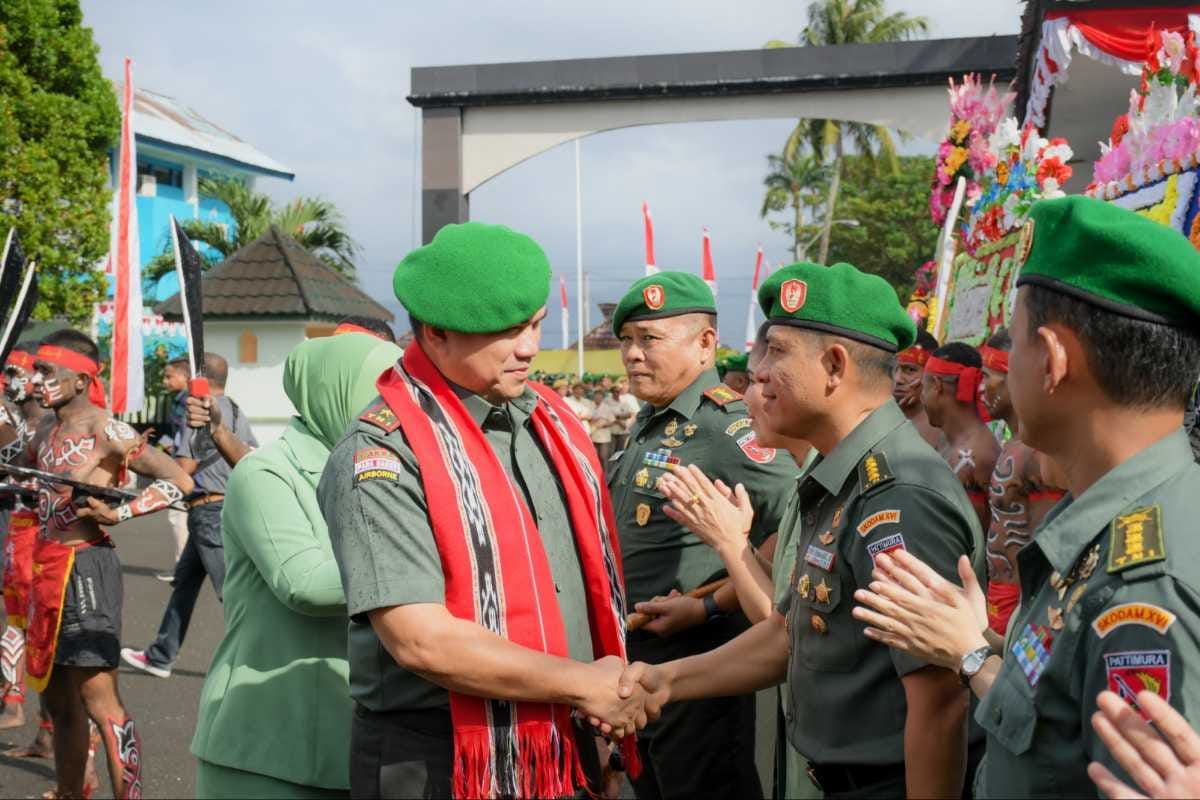 Maluku, fajarharapan.id – Setelah kemarin tiba di Bumi Raja–Raja Maluku, kini tiba saatnya Mayjen TNI Syafrial didampingi Ketua Persit KCK PD XVI/Pattimura Ny. Shinta Syafrial, melaksanakan tradisi passing in parade sebagai tradisi awal melaksanakan kedinasan di Kodam XVI/Pattimura, Kamis (24/8/2023).