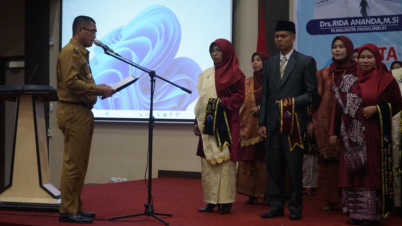 Payakumbuh, fajarharapan.id – Penjabat Wali Kota Payakumbuh Rida Ananda kukuhkan Guru Penggerak Angkatan ke-6 Kota Payakumbuh dan penutupan Pelatihan Pengimbasan Program Belajar Metode Gasing Bagi Guru SD se-Kota Payakumbuh di Aula Ngalau, Lt. 3 Balai Kota Payakumbuh, Senin (4/9/2023).
