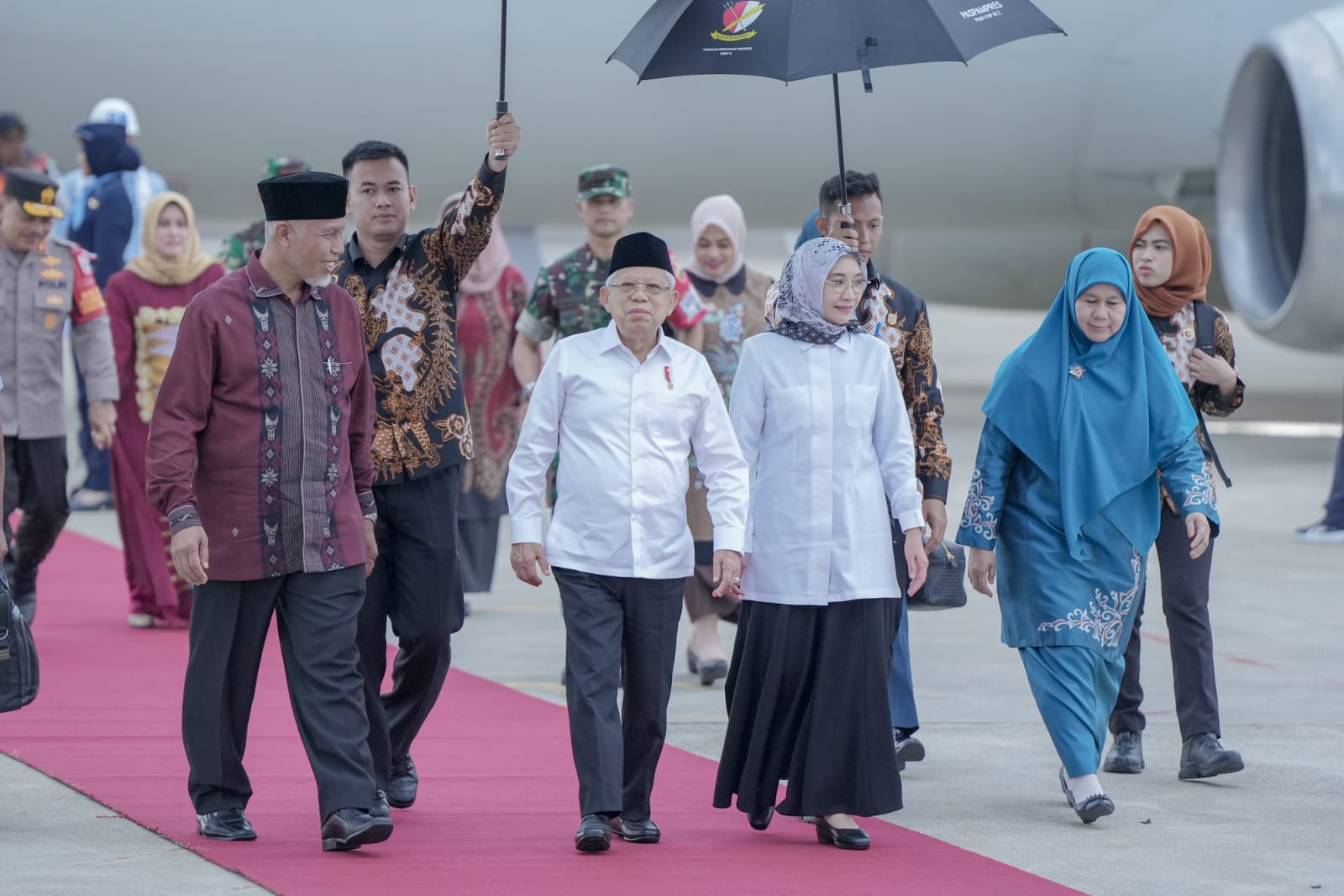 Padang Pariaman – Wakil Presiden (Wapres) Republik Indonesia K.H. Ma’ruf Amin didampingi Ibu Hj. Wury Amin beserta rombongan melakukan kunjungan kerja ke Provinsi Sumatera Barat (Sumbar). Rombongan disambut oleh Gubernur Sumbar Mahyeldi Ansharullah beserta Istri Ny. Harneli Mahyeldi di VIP Room Bandara Internasional Minangkabau (BIM), Kabupaten Padang Pariaman, Kamis (7/9/2023).