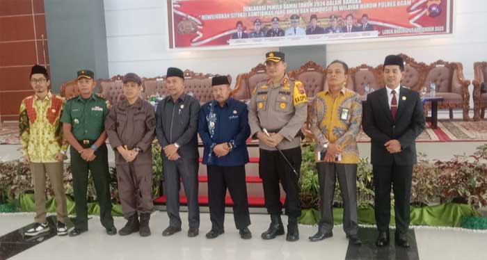 Deklarasi ini digelar di Balairung rumah dinas Bupati Agam Padang Baru Lubuk Basung yang dihadiri oleh Bupati Agam, Forkopinda, KPU, Bawaslu, LSM, PWI, AWPI, IWO dan 18 pimpinan porpol peserta pemilu wilayah Hukum Polres Agam, Kamis (7/9).