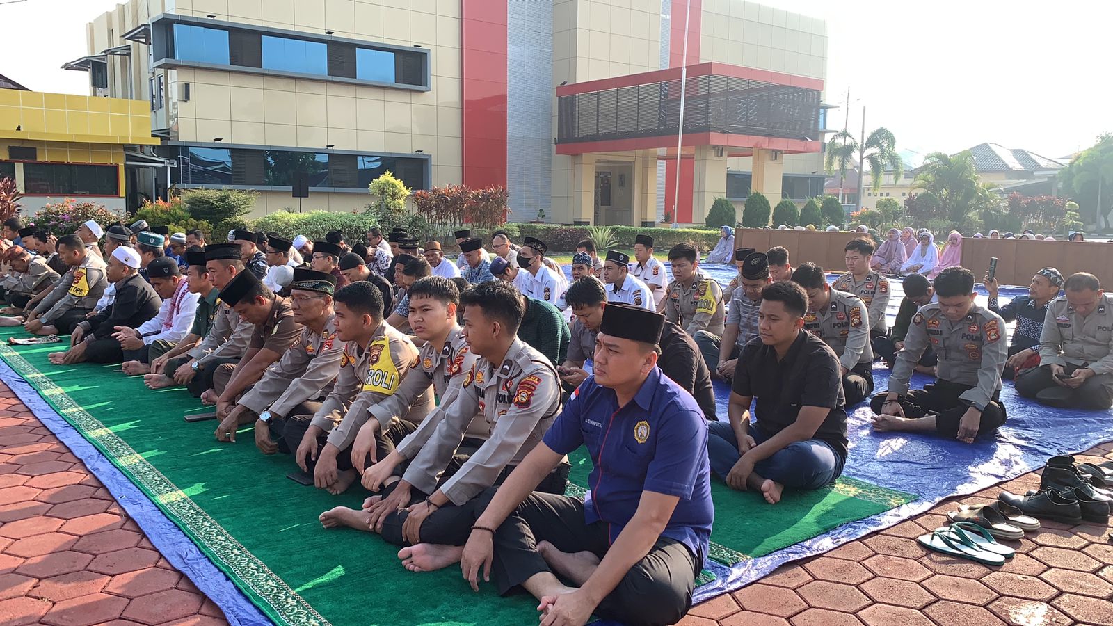 Sholat Istisqo diimami oleh Ustadz Miftahudin dan diikuti oleh seluruh personil Polres Muba, yang mewakili Forkopimda dan masyarakat sekitar Mapolres Muba.