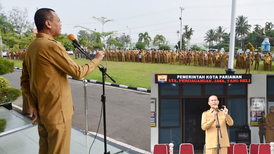 Kota Pariaman – Wali Kota Genius Umar pimpin apel pagi gabungan Aparatur Sipil Negara (ASN) jajaran Pemerintah Kota Pariaman di halaman Kantor Balai Kota, Senin pagi (18/9/2023).