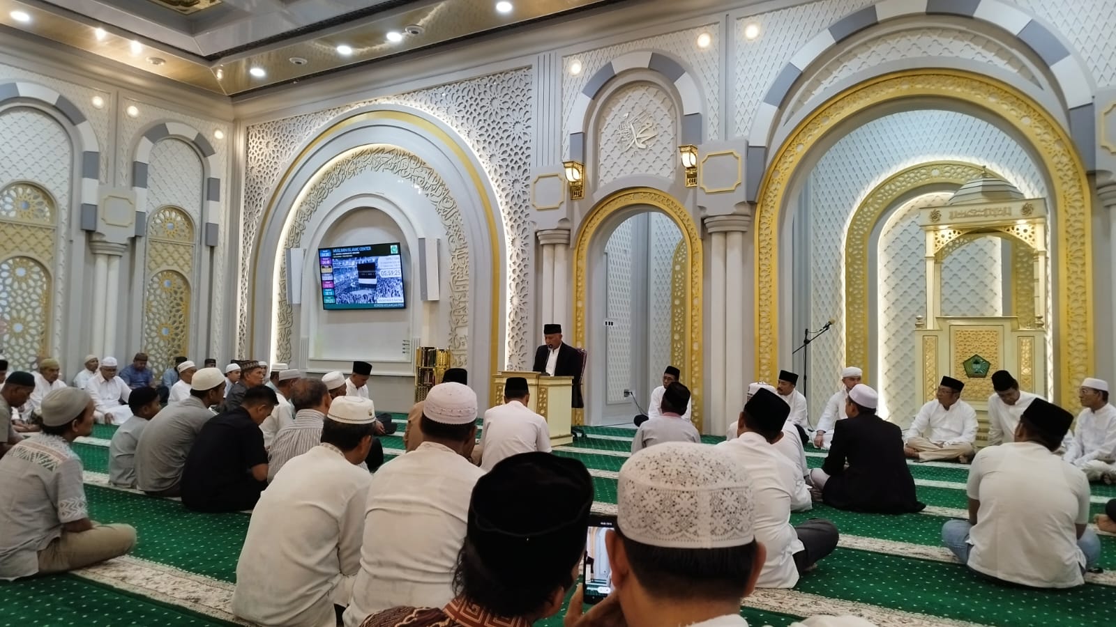 Dumai – Gubernur Sumatera Barat (Sumbar), Mahyeldi Ansharullah mengisi tausiah subuh di Masjid Al Muslimin, Kota Dumai, Provinsi Riau. Sabtu (23/9/2023). Dalam kuliah subuhnya itu, Gubernur Mahyeldi menekankan pentingnya menyiapkan generasi berkualitas kepada para jamaah.