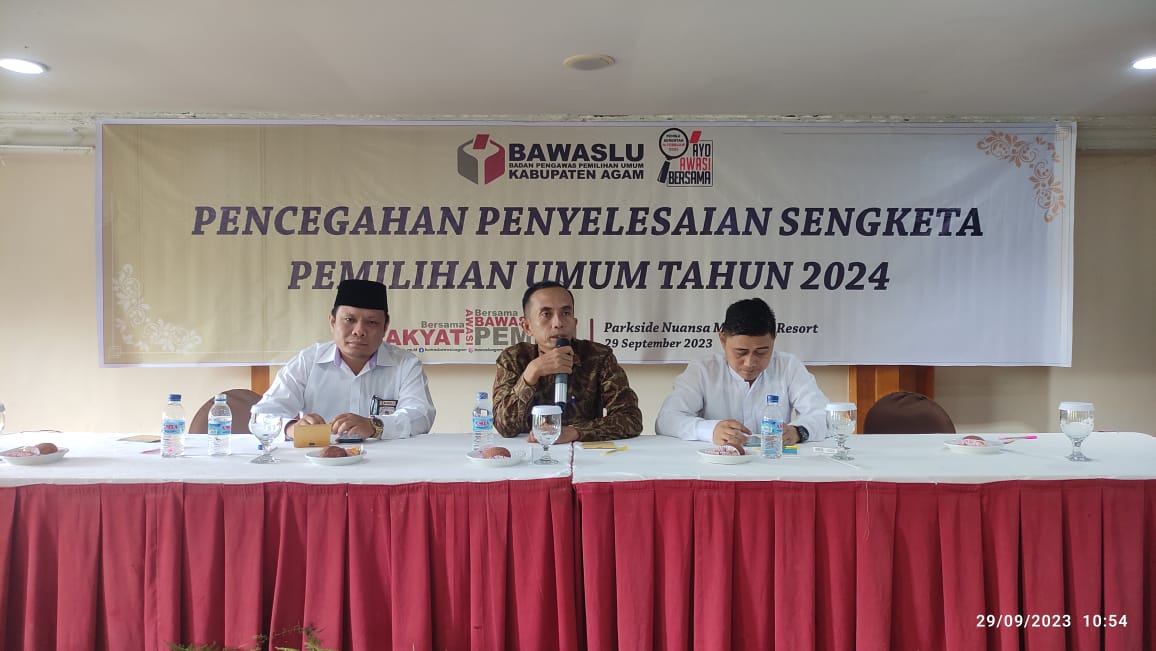Sementara Ketua Bawaslu Kabupaten Agam, Suhendra Pemilu merupakan sarana demokrasi rakyat untuk memilih wakil dan pemimpin yang akan menjalankan estafet kepemimpinan dari daerah hingga nasional sekaligus mencontohkan bahwa Pemilu dengan lomba lari yang mungkin akan terjadi gesekan – gesekan yang dialami oleh peserta yang perlu diselesaikan.