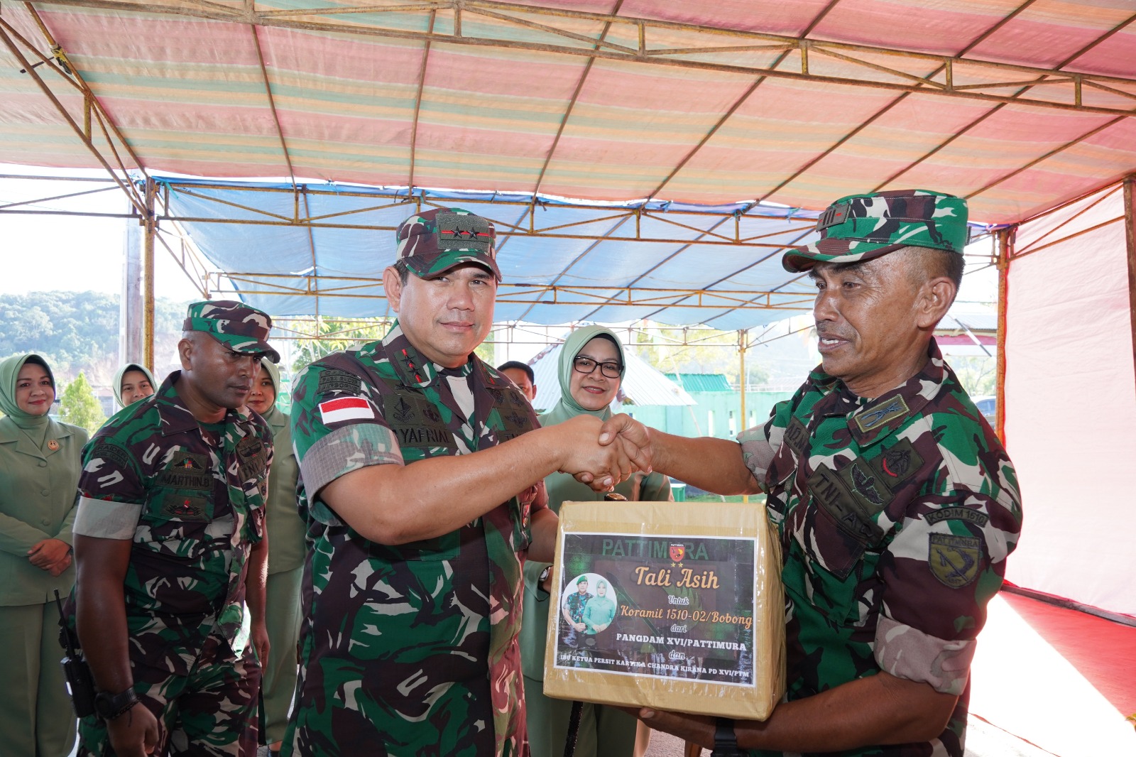 Maluku, fajarharapan.id – Pada agenda terakhir dalam rangkaian kunjungan kerja di wilayah Maluku Utara, Pangdam XVI/Pattimura Mayjen TNI Syafrial, PSC., M.Tr.(Han)., didampingi Ketua Persit KCK PD XVI/Pattimura Ny. Shinta Syafrial dan beberapa Pejabat utama Kodam XVI/Pattimura, mengunjungi Koramil 1510-02/Bobong di Kabupaten Pulau Taliabu, Kamis (19/10/2023).