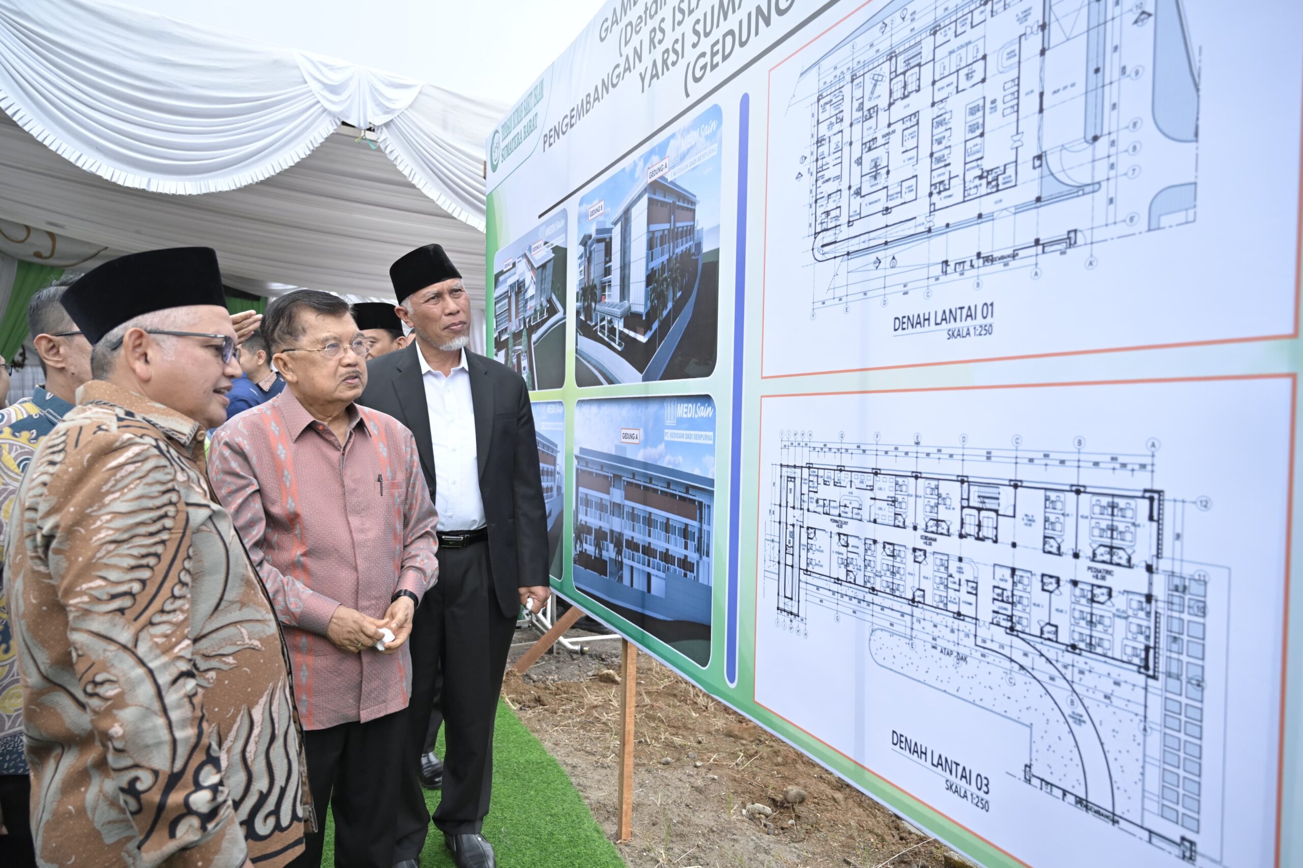 Padang Panjang – Gubernur Sumatera Barat (Sumbar), Mahyeldi Ansharullah, mendampingi Wakil Presiden RI ke-10 dan 12, Muhammad Jusuf Kalla (JK) dalam agenda peletakan batu pertama pembangunan Gedung Baru Rumah Sakit Islam (RSI) Ibnu Sina Padang Panjang, Sabtu (04/11/2023). Kedua tokoh tersebut mengapresiasi kehadiran RSI Ibnu Sina di tengah masyarakat, yang terus memberikan dan meningkatkan kualitas pelayanan dalam upaya pemulihan pasien.