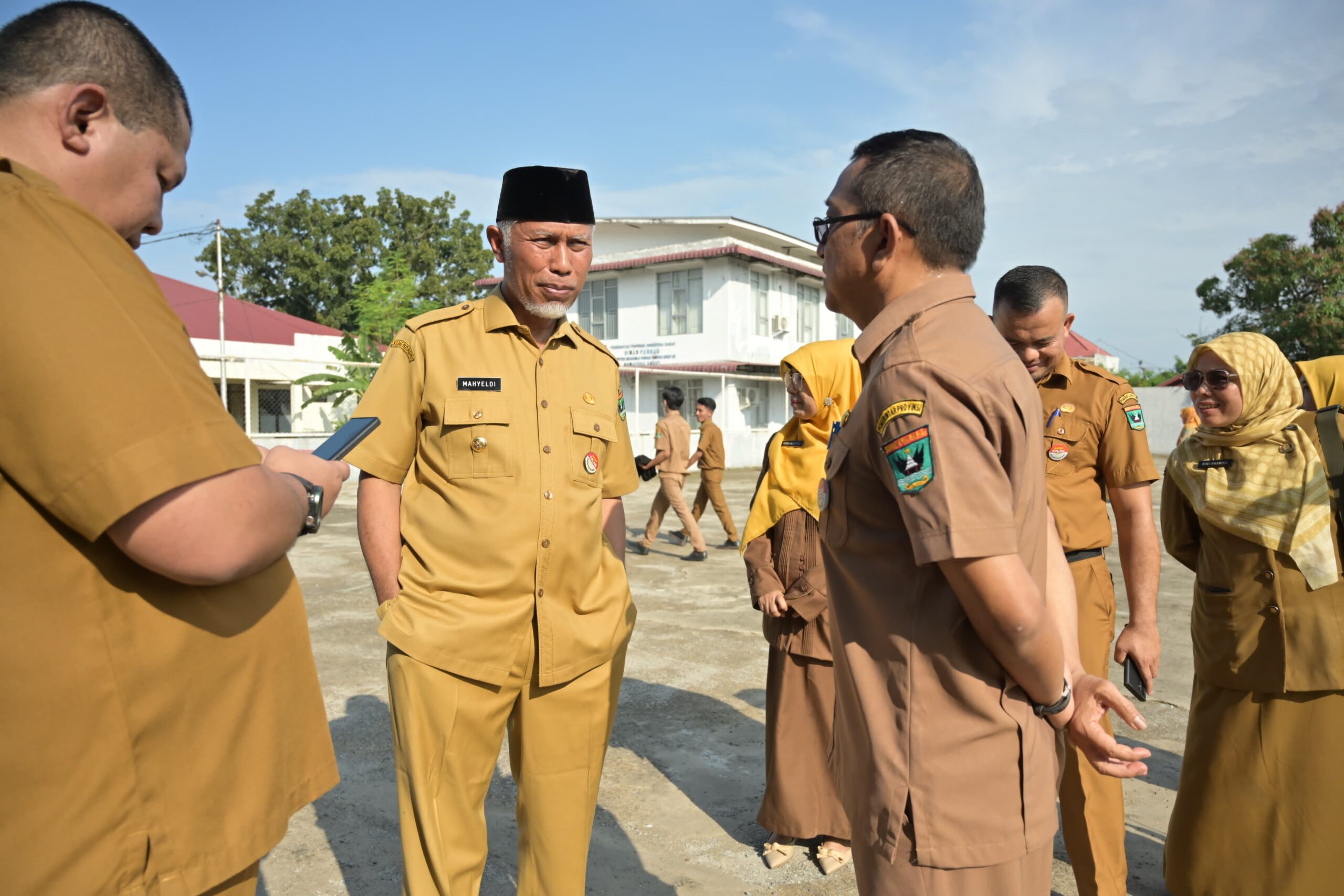 Hal itu disampaikan Gubernur saat memimpin apel di Kantor Dinas Pangan Provinsi Sumbar, yang juga diikuti oleh ASN Badan Perencanaan Pembangunan Daerah (Bappeda) dan Dinas Kehutanan (Dishut) Sumbar, Senin (6/11/2023). Gubernur juga meminta, agar pelaksanaan kegiatan senantiasa mengedepankan kerja sama tim, dan bukan mengandalkan kemampuan individu.