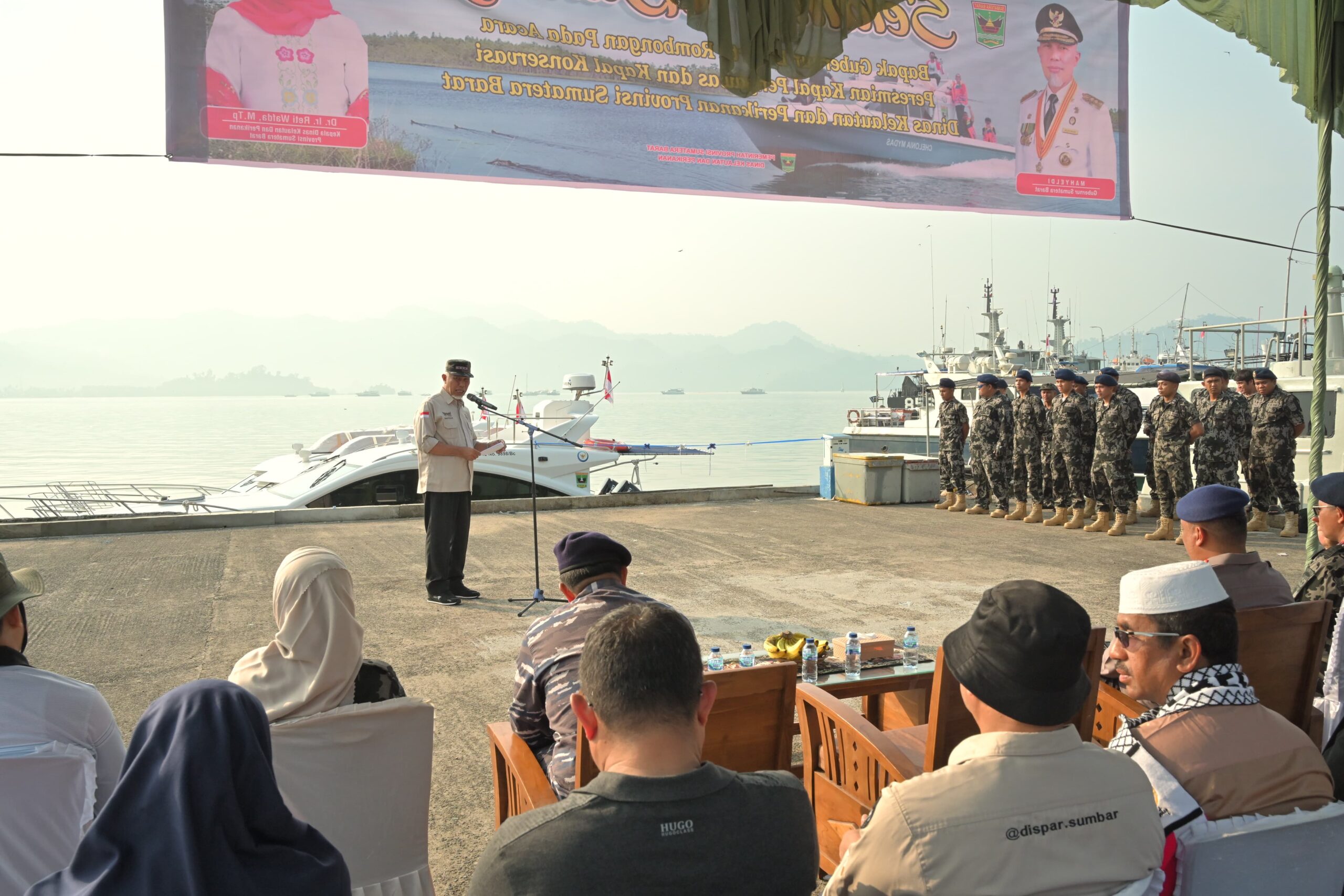 Padang – Gubernur Sumatera Barat (Sumbar), Mahyeldi Ansharullah, meresmikan penggunaan 1 unit Kapal Pengawas serta 2 unit Kapal Konservasi di Pelabuhan Bungus, Padang, Minggu (12/11/2023).