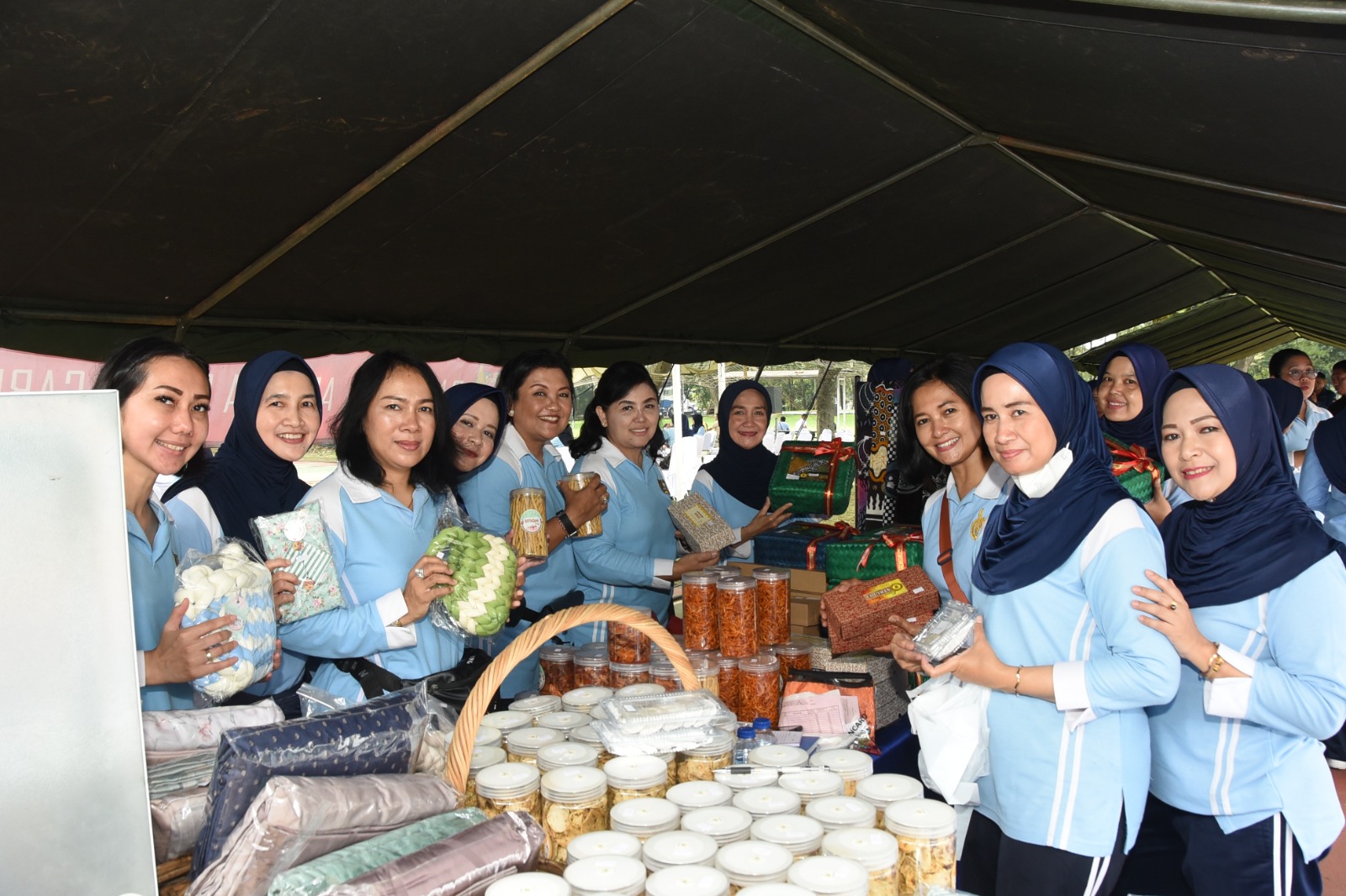 ” Sementara pelaksanaan bazar bertujuan untuk memperkenalkan hasil karya ibu-ibu dalam upaya meningkatkan dan membantu ekonomi keluarga serta mendorong minat anggota untuk mencintai produk dalam negeri,” jelas Ny. Rina Oki Yanuar.