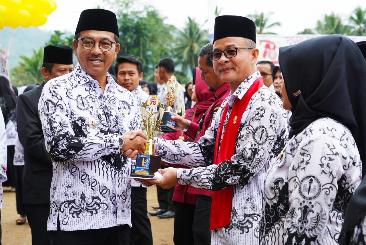 Solsel, fajar harapan.id—Upacara peringatan Hari Guru Nasional ke-78 Tahun 2023 dipimpin langsung oleh Bupati Solok Selatan H Khairunas yang bertempat di GOR Rimbo Tangah, Kecamatan Sangir, Solsel, Sabu (25/11/2023).