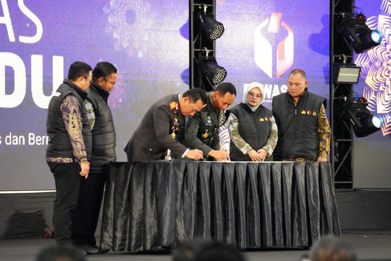 Jakarta, fajarharapan.id – Panglima TNI Jenderal TNI Agus Subiyanto, S.E., M.Si. menghadiri deklarasi kampanye damai atau Rakornas Penegakan Hukum Terpadu (Gakkumdu) 2024 dengan tema “Gakkumdu Mengawal Pemilu 2024 Yang Demokratis dan Bermartabat” yang diselenggarakan oleh Bawaslu dan KPU, bertempat di Hotel Sahid, Jakarta Pusat, Senin (27/11/2023).