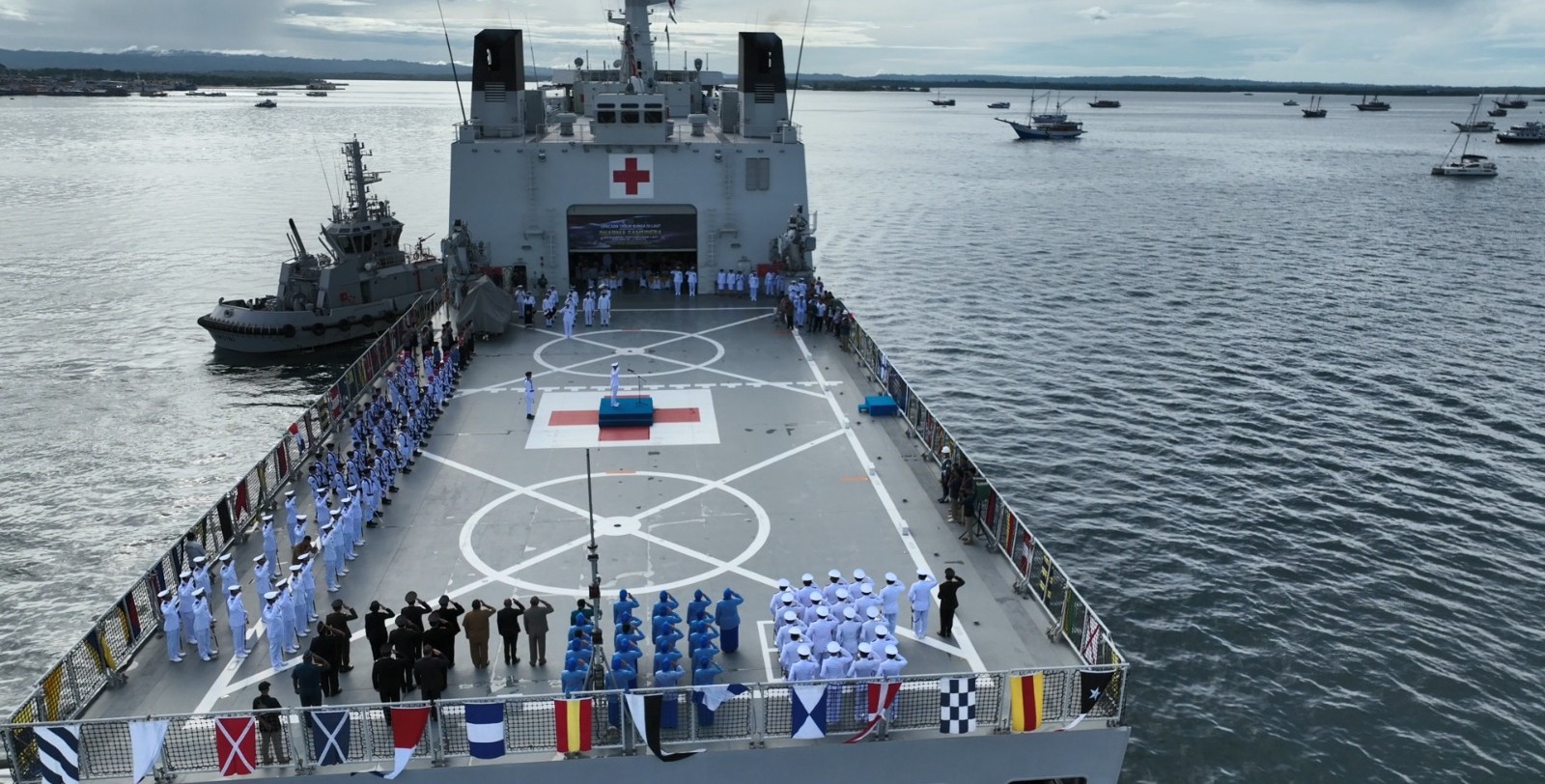 Sorong, fajarharapan.id – Kepala Staf Koarmada III Laksamana Pertama TNI Singgih Sugiarto, S.T., M.Si., yang mewakili Panglima Komando Armada III (Pangkoarmada III) Laksamana Muda TNI Hersan, S.H., M.Si., M.Tr.Opsla, memimpin Upacara Tabur Bunga dalam rangka memperingati Hari Dharma Samudera Tahun 2024, yang dilaksanakan di Geladak Helikopter KRI dr. Wahidin Sudirohusodo-991 yang sedang layar di sekitar perairan Dermaga Lantamal XIV Sorong Papua Barat Daya. Dalam peringatan Hari Dharma Samudera Tahun 2024 kali ini tema yang diangkat adalah ”Kobarkan Semangat Pertempuran Prajurit Jalasena Yang Tangguh, Profesional dan Modern”. Senin (15/01/24).