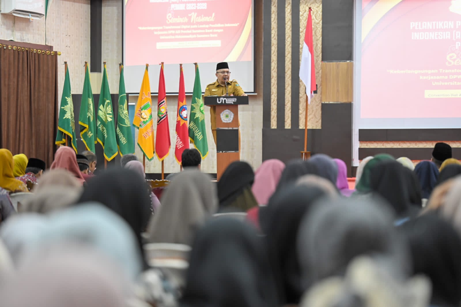 Padang – Sekretaris Daerah Provinsi Sumatera Barat (Sekdaprov Sumbar), Hansastri, mewakili Gubernur saat membuka Pelantikan Pengurus DPW Asosiasi Dosen Indonesia (ADI) Provinsi Sumbar periode 2023-2028, yang dilantik oleh Ketua Umum DPW-ADI Pusat Prof. Mohammaed Ali Berawi di Gedung Convention Hall Ahmad Syafii Ma’arif, Kampus I Universitas Muhammadiyah Sumbar, Selasa, (16/1/2024).