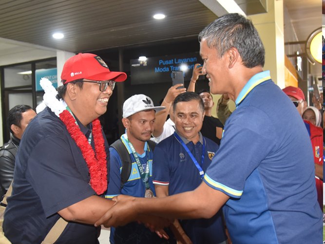 “Kita menyambut dengan penuh suka cita. Karena, keberhasilan ini harus dirasakan dan ditularkan kepada masyarakat, mulai dari Bandara ini, ke Istana Gubernuran di Padang, Dan sampai balik ke Kota Pariaman. Untuk itu, para pemain kita arak dengan mobil yang disiapkan PKDP Kota Padang,” tukasnya.