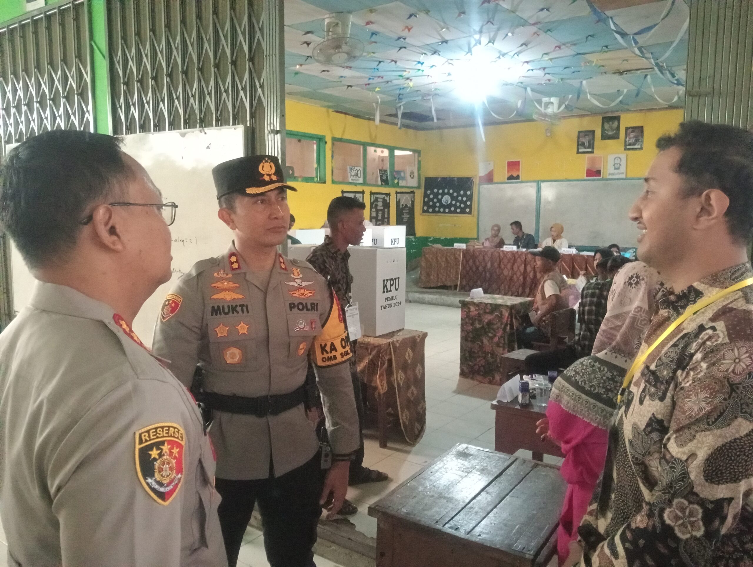 “Alhamdulillah proses Pemilu yang sedang berlangsung hari ini berjalan aman dan kondusif. Termasuk di TPS 09 di Durian Tarung, Kecamatan Sangir, yang kami kunjungi ini bersama TNI,” ujar AKBP Arief Mukti.