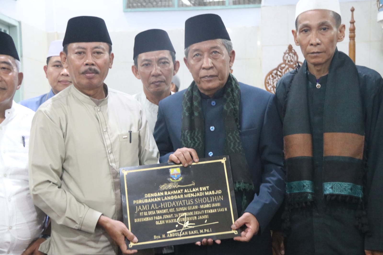 “Alhamdulillah pada malam hari ini kita meresmikan perubahan status langgar mejadi Masjid Jami’ Al Hidayatussholihin Kebun Kolim Desa Tangkit Kecamatan Sungai Gelam, semoga kedepan selalu istiqomah dalam mengisi masjid ini,” ujar Wagub Sani.