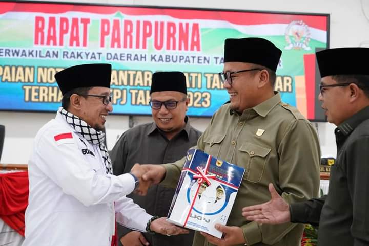 Selanjutnya dalam nota pengantar Bupati Eka Putra sampaikan target Pendapatan Asli Daerah (PAD) tahun 2023 sebesar Rp.148.527.936.542,00 dengan realisasi sebesar Rp.150.888.841.205,70 atau 101.59%, sementara Pendapatan transfer dianggarkan sebesar Rp.1.114.692.752.964.00 dengan realisasi sebesar Rp.1.101.636.135.974,00 atau 98,83% dan lain-lain pendapatan sah dianggarkan sebesar Rp.3.320.000.000,00 dengan realisasi Rp.3.205.501.410,00 atau 96,55%.