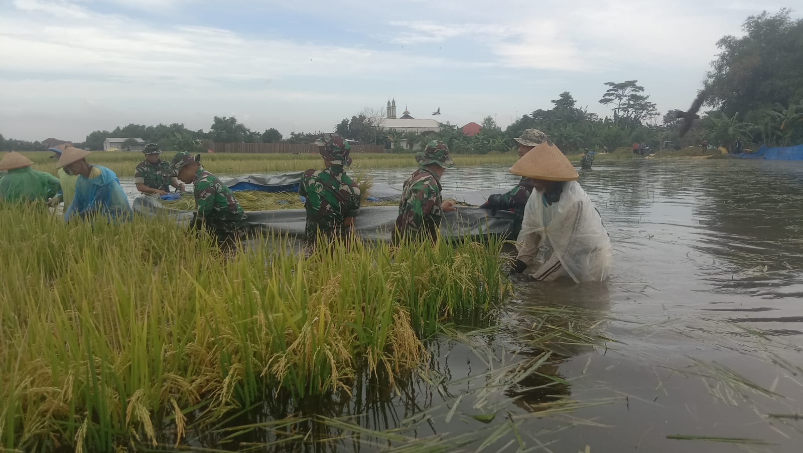 ” Hari ini kami bersama masyarakat turun langsung ikut panen padi, meski ketinggian air cukup tinggi, hal ini dimaksudkan untuk mengurangi dampak gagal panen dan mengurangi kerugian yang dialami petani,” ungkap Ihwan.