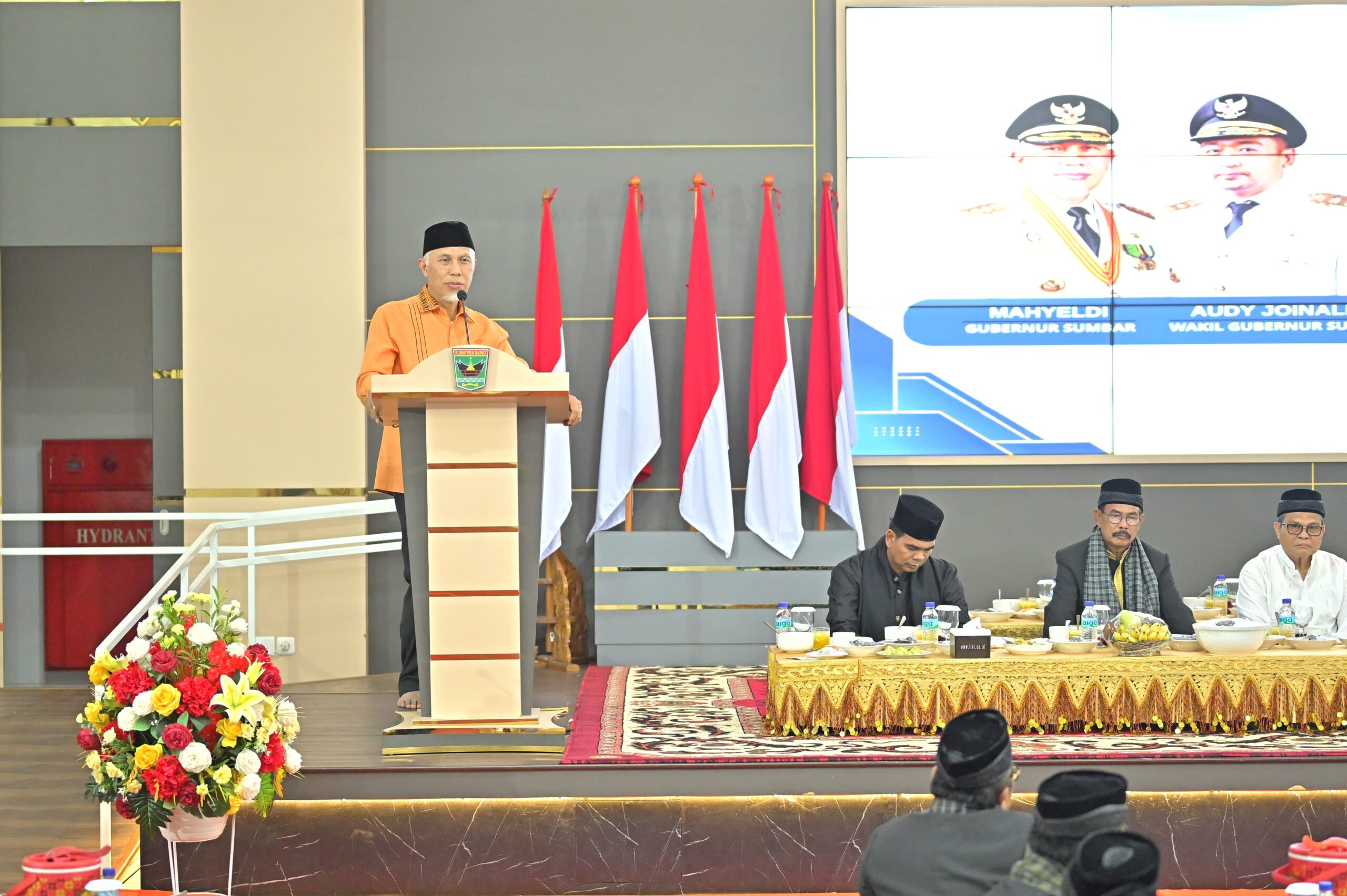 “Syukur Alhamdulillah, kami sangat senang bisa bersilaturahim dan berbuka bersama dengan alim ulama dan tokoh adat kita hari ini. Tentu saja, agenda ini akan semakin mempererat silaturrahim serta rasa persatuan dan kesatuan kita bersama,” ucap Gubernur Mahyeldi dalam sambutannya.